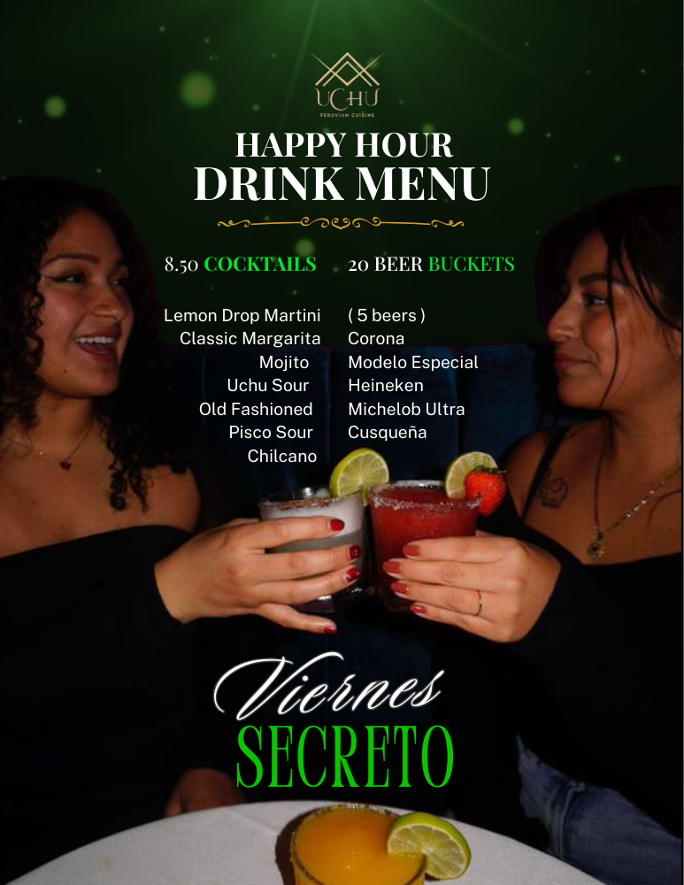 Cada plato está pensado para equilibrar sabores tradicionales peruanos con la energía culinaria de México. Este menú solo está disponible los viernes, haciendo del Happy Hour una experiencia especial y diferente.